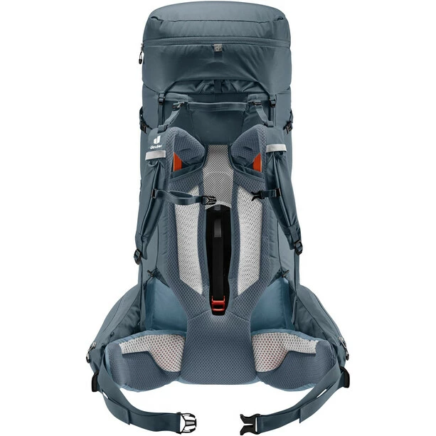 Its superior carry comfort is down to the deuter Aircontact back system with Air Spacer mesh and a large ventilation channel, plus ergonomic ActiveFit shoulder straps and an adjustable sternum strap. The Y-shaped frame, mobile hip fins and ergonomic lumbar pad combine to distribute the load effectively. A full-length, J-shaped zipper on the front makes contents easy to locate lower down in the main compartment. While large, detachable hip fin pockets (3 L) provide extra storage and keep items within reach. A zip-out 1.5-liter bottle holster also lets you hydrate on the move.