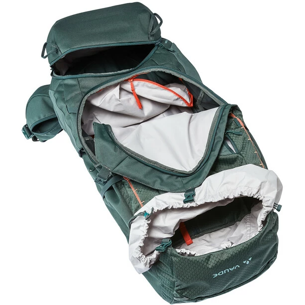 Head on out into great outdoors! On long tours in isolated regions, trekking pros use this large 65-liter trekking pack to transport food and gear for several weeks – whether you’re trekking in Iceland or in South America. The Tergolight Comfort Space Pro suspension system ensures optimum weight distribution for heavy loads. The pack’s uniquely designed back padding relieves pressure on the sacroiliac joint – a recess in the lower back area can prevent back pain. The padded Ergoshape shoulder straps provide additional relief and ample freedom of movement for your arms. Both the back length and load positioning straps are fully adjustable so you can ensure the pack fits perfectly. A well-padded hip belt with pocket is exceptionally comfortable. You can remove your gear from either the top of the front of the main compartment. A sleeping bag or the like fits in the separate bottom compartment and everything you need close at hand can go in the front pocket. Side pockets are accessible without taking the pack off. A daisy chain and adjustable compression straps offer plenty of attachment options for additional gear. There’s even a replacement buckle under the lid – just in case. You can add another 10 liters of gear thanks to the height-adjustable, detachable lid which you can also use separately as a waist pack. Even when you’re carrying a lot, you can move your head freely in front of the lid. With the integrated rain cover, this trekking pack will defy any weather. The main material is 100 % recycled, extremely robust and abrasion resistant. Our VAUDE Green Shape label ensures environmentally-friendly, functional products made from bluesign certified, sustainable materials.